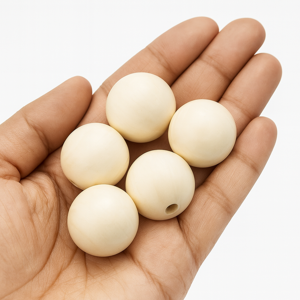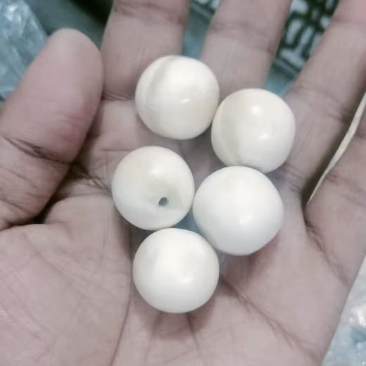 ลูกปัดทรงกลมทำมือจากกระดูกสไตล์ชนเผ่า งานฝีมือแบบเรียบง่าย ดีไซน์ไม่ซ้ำใคร สีเบจ สำหรับงานประดิษฐ์เครื่องประดับ