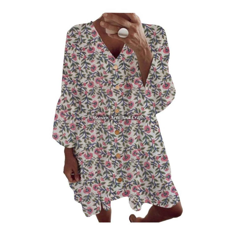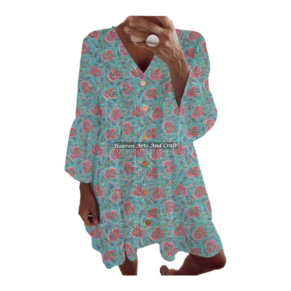 ชุดเดรสผ้าฝ้ายพิมพ์ลายดอกไม้สั่งทำพิเศษสำหรับฤดูใบไม้ผลิและฤดูร้อน เสื้อแขนกระดิ่งสำหรับร้านขายเสื้อผ้าสตรี