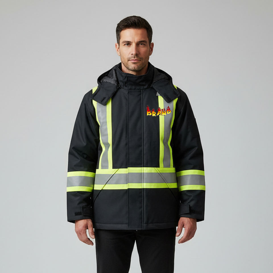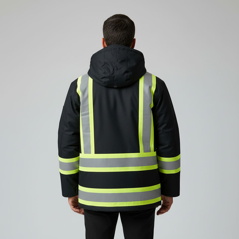 เสื้อแจ็คเก็ตทำงานฤดูหนาวแบบสั่งทำพิเศษ ผ้าฝ้ายสะท้อนแสง ANSI Class 1 กันน้ำ กันลม สำหรับผู้ชาย พร้อมไฟ LED