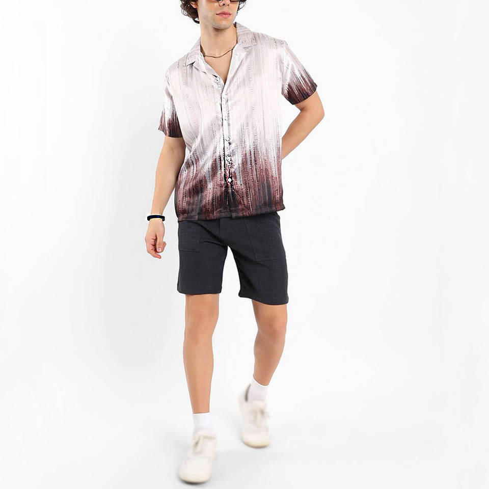 เสื้อเชิ้ตคอปกรูปตัววีสไตล์คิวบาสำหรับผู้ชาย แฟชั่นอินเทรนด์