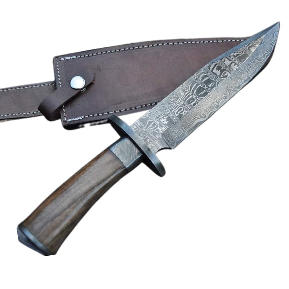 มีดล่าสัตว์ดามัสกัสสั่งทำพิเศษพร้อมด้ามจับไม้ Burl งานศิลปะและปลอกหนัง