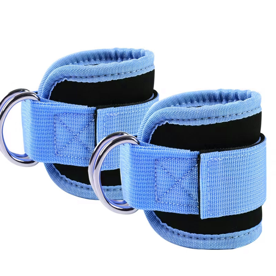 สายรัดข้อเท้าไนลอนนีโอพรีนสีน้ำเงินเข้มสายรัดข้อเท้าออกกำลังกายในยิมพร้อมห่วงรูปตัว D สำหรับเครื่องยกน้ำหนัก