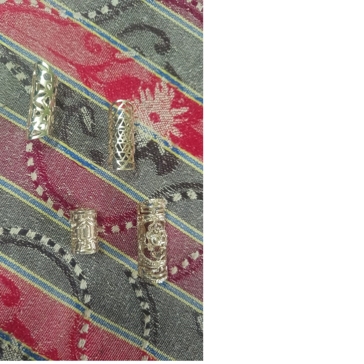 ลูกปัดเดรดล็อกทำเองในโลหะทองเหลืองเหมาะสำหรับใช้เป็นจุกสำหรับเดรดล็อกซึ่งมีให้เลือกหลายขนาด