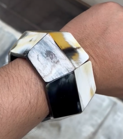 กำไลข้อมือทำมือจากเขาควายรูปทรงสัตว์ เป็นมิตรกับสิ่งแวดล้อม ประดับด้วยหินหลากหลายขนาด เหมาะสำหรับงานแต่งงาน ของสะสมงานศิลปะ งานฝีมือทำมือ