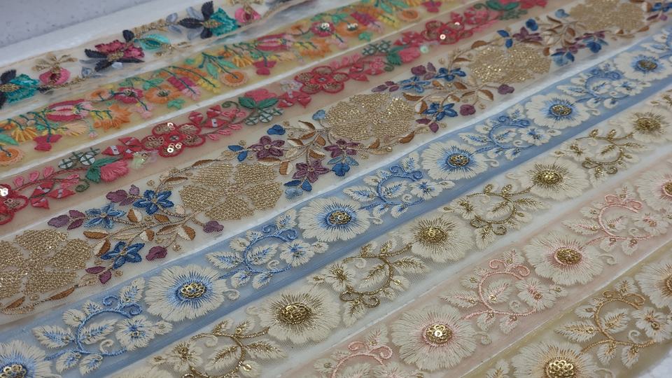 ลูกไม้ปักเลื่อมแบบสั่งทำพิเศษ เป็นมิตรกับสิ่งแวดล้อม พร้อมลวดลายดอกไม้ที่ประณีต สำหรับงานแต่งงาน แฟชั่นหรูหรา และนักออกแบบมืออาชีพ