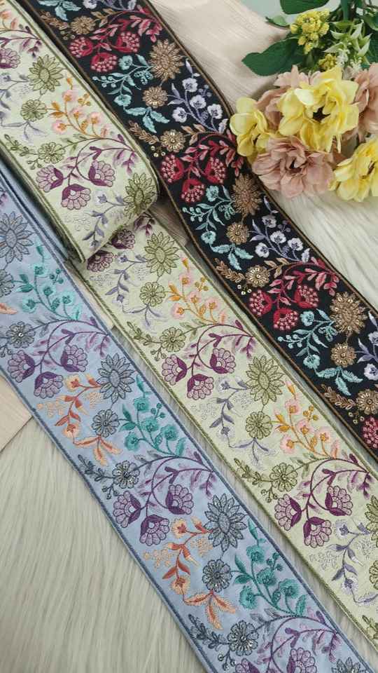 ลูกไม้ปักลายดอกไม้แบบสั่งทำพิเศษ ขอบประดับเลื่อม กว้าง 1.25 นิ้ว เป็นมิตรต่อสิ่งแวดล้อม สำหรับตกแต่งเสื้อผ้าสตรี