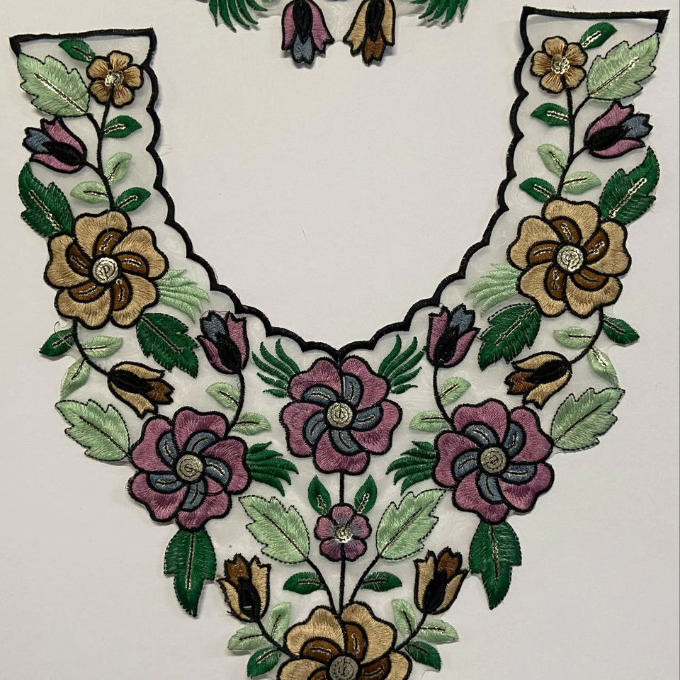 ชิ้นส่วนคอปักเลื่อมสำหรับงานปักตามสั่งแผ่นปะสไตล์งานเย็บปักสำหรับเสื้อผ้าและนักออกแบบแฟชั่นจำหน่ายต่อ