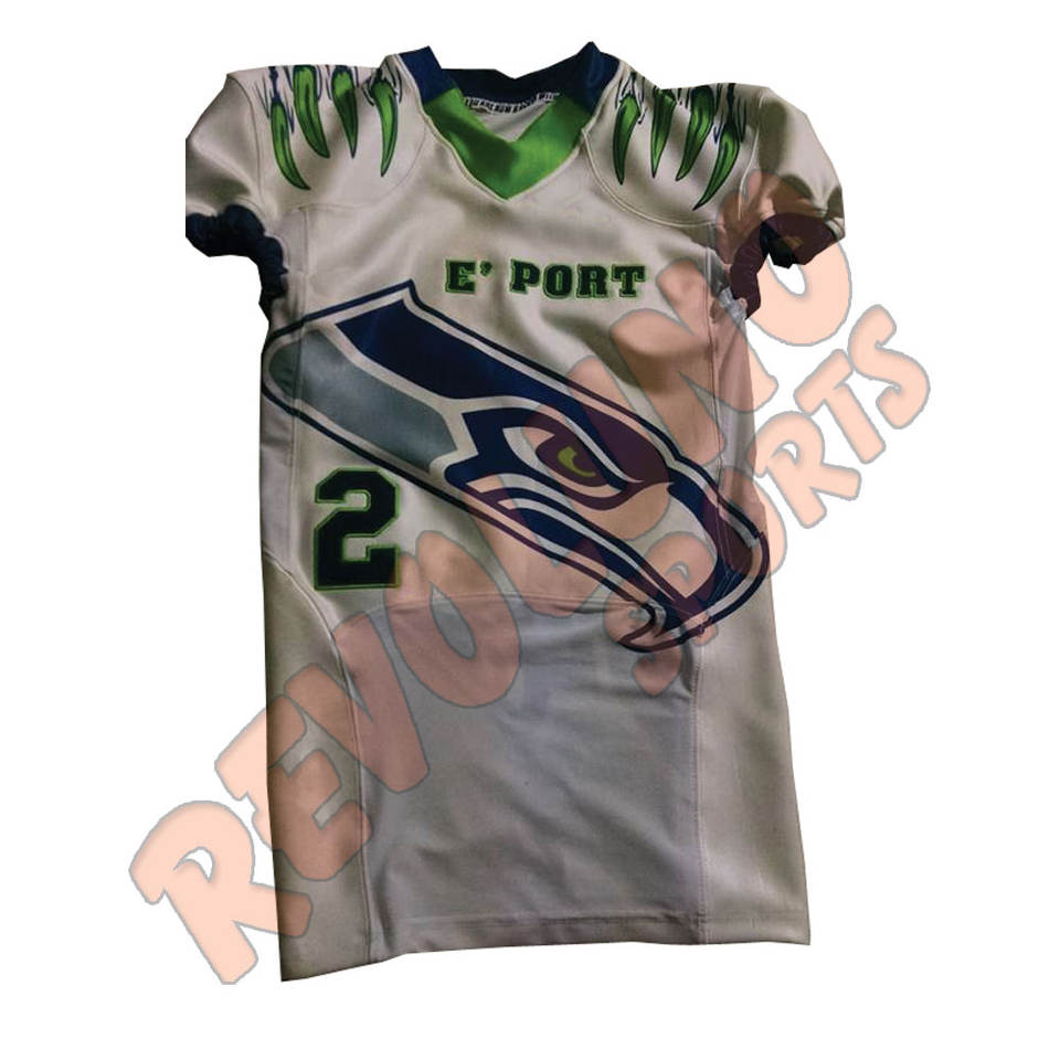 เสื้อฟุตบอลอเมริกันพิมพ์ลายซับลิเมชันงานปักตามสั่ง