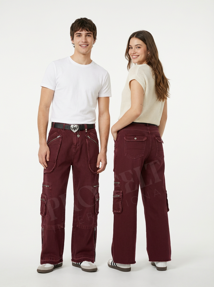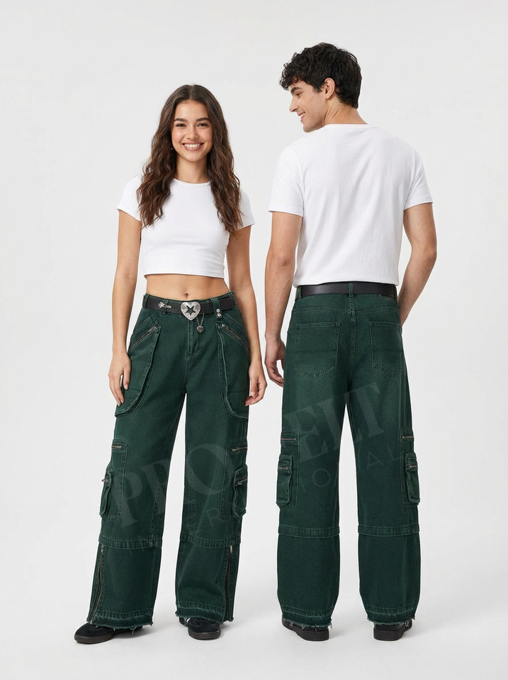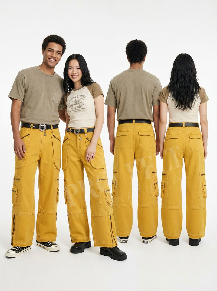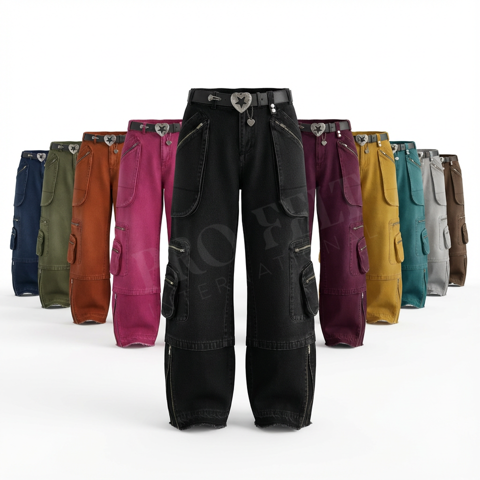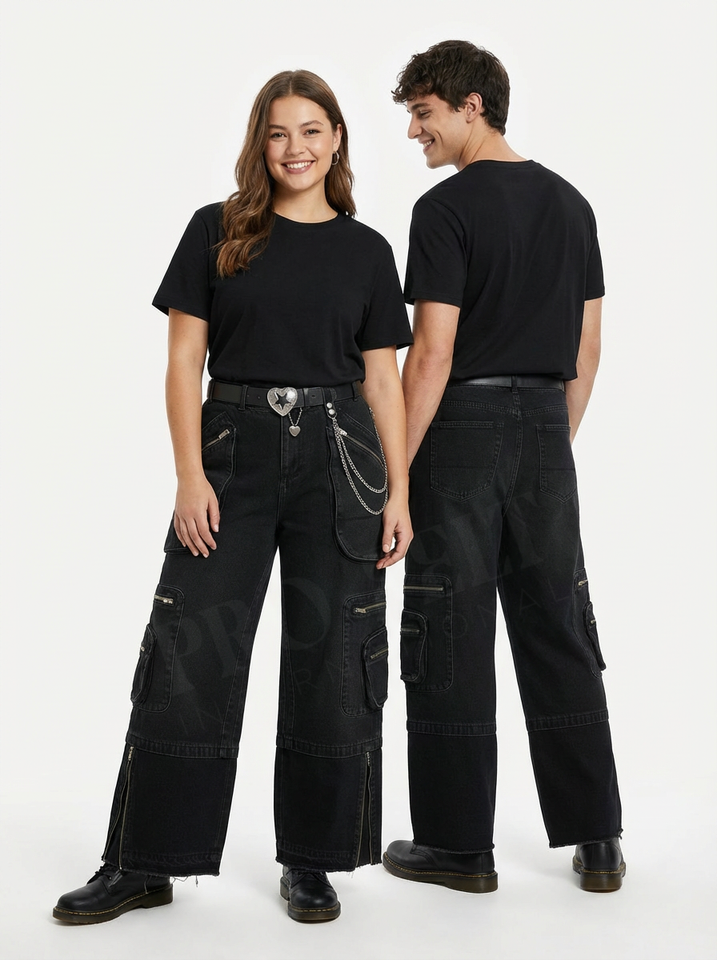 กางเกงยีนส์คาร์โก้ปักโลโก้สั่งทำพิเศษ ทรงขากว้าง สไตล์สตรีทแวร์ หลายกระเป๋า ผ้าเดนิมลำลอง แฟชั่น กางเกงยีนส์อเนกประสงค์