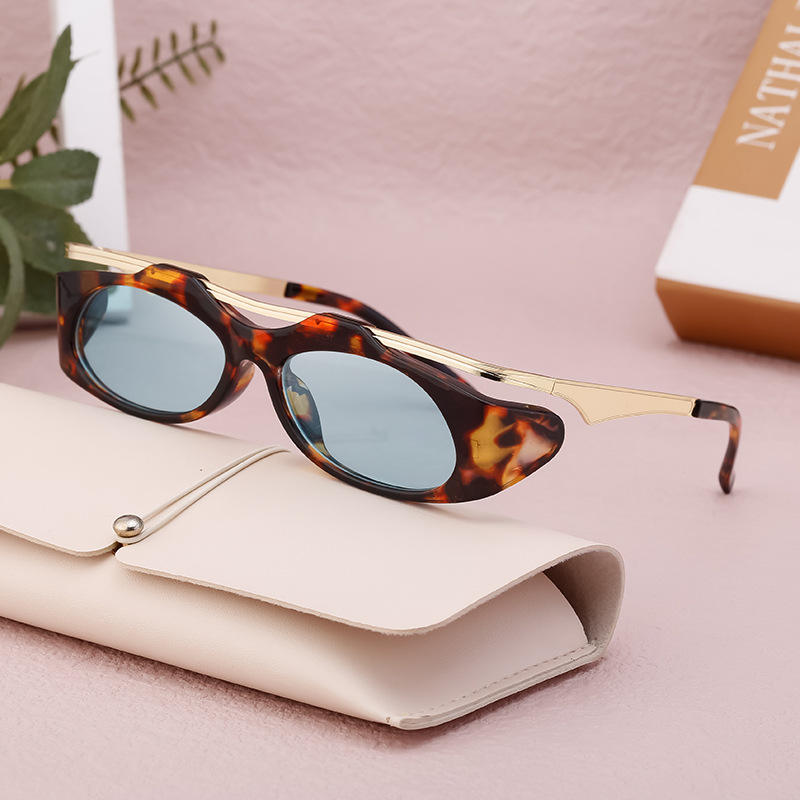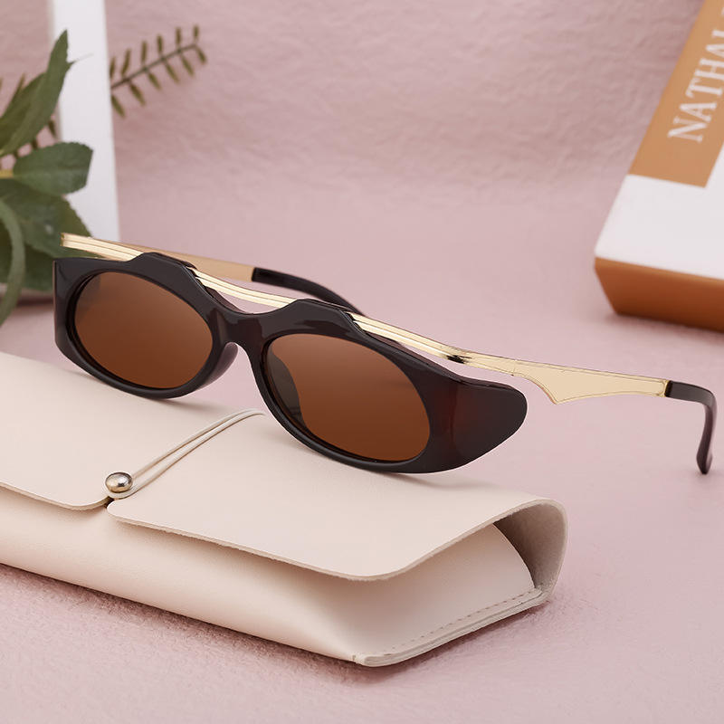 แว่นกันแดดผู้หญิงสไตล์ยุโรปอเมริกันสั่งทำพิเศษ กรอบสีดำ เลนส์ PC ป้องกันรังสียูวี 400 ดีไซน์แฟชั่นอินสตาแกรม