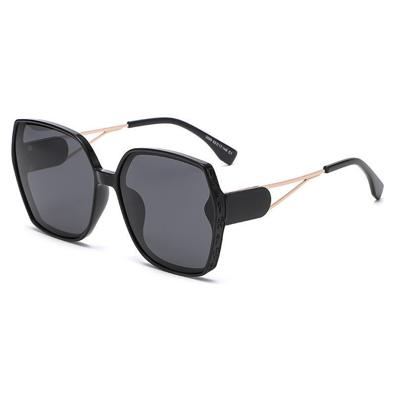 แว่นกันแดดโพลาไรซ์แฟชั่นสั่งทำพิเศษสำหรับผู้หญิง สไตล์เกาหลี กรอบใหญ่ สีดำ ป้องกันรังสียูวี 400 สไตล์อินสตาแกรม