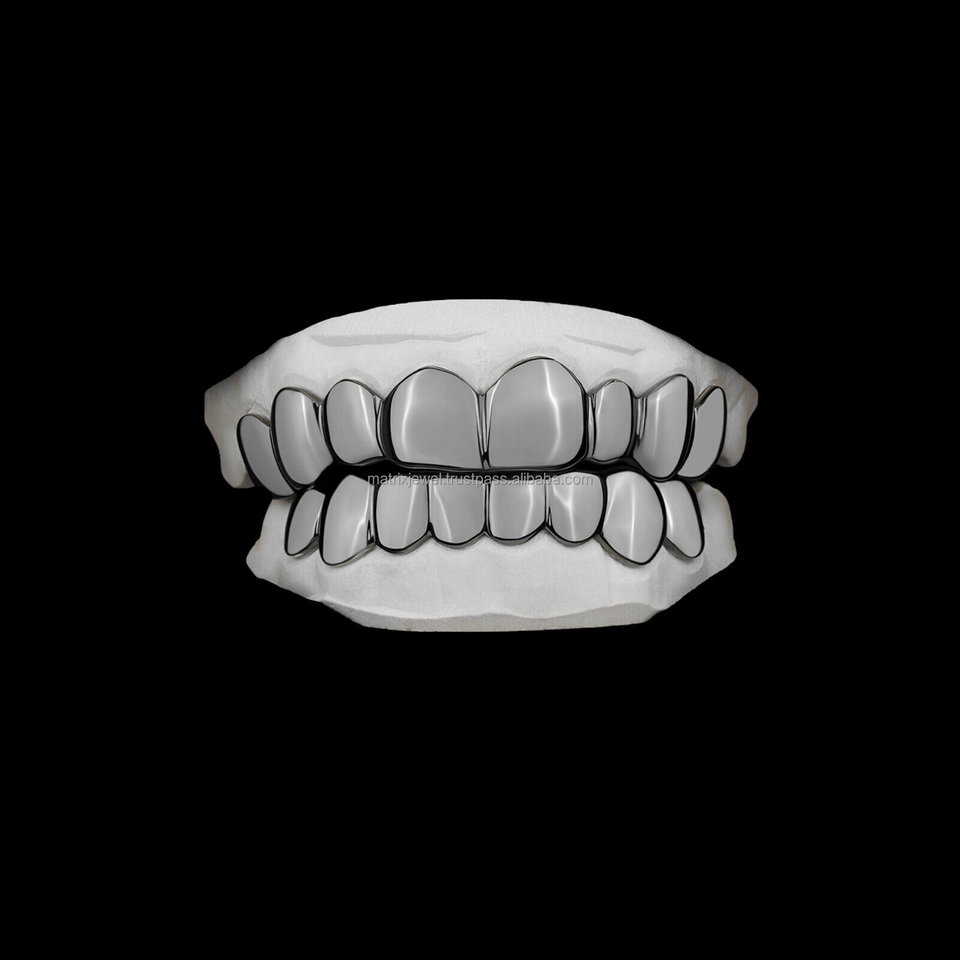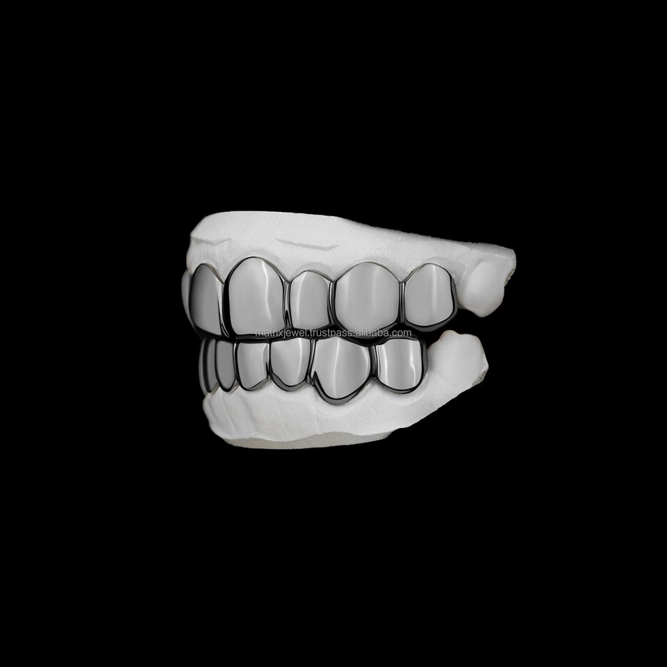 ตะแกรงตัดแบบฮิปฮอปแบบดัดได้925เตาเงินสตาร์ลิ่งที่กำหนดเอง10KT ทึบทองแบบธรรมดาตะแกรงฟัน
