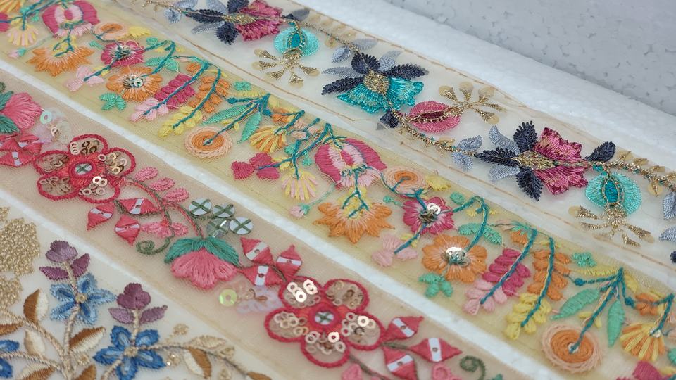 Custom Made Floral Sequin Embroidered Lace Eco-Friendly Vintage Design Custom Colours Patterns for Apparel Bridal Fashion