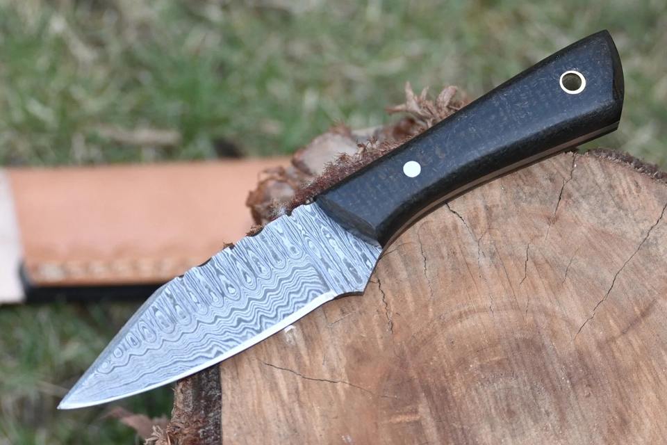 มีดล่าสัตว์แบบมีปลอกเหล็กดามัสกัสทำจากเหล็กขึ้นรูปมีดแบบตายตัวพร้อมปลอกรองรับใบมีด OEM ดีไซน์ใหม่ล่าสุด