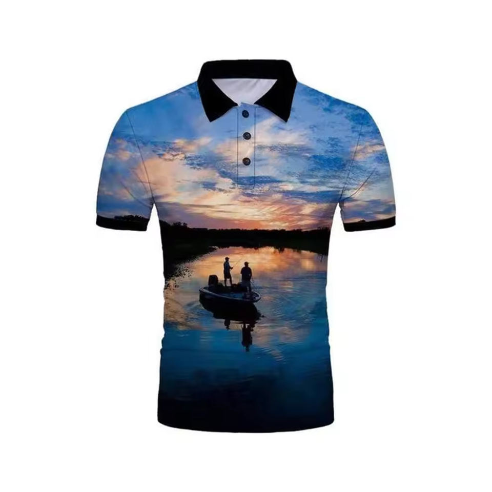 เสื้อโปโลตกปลาแขนสั้นพิมพ์ลายพิมพ์ซับลิเมชันชุดใส่ตกปลา