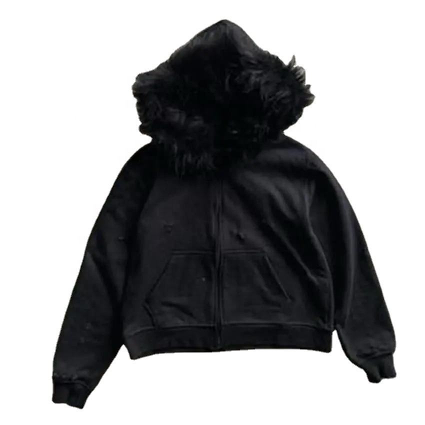 เสื้อฮู้ดขนเทียมสำหรับผู้ชายเสื้อฮู้ดขนเทียมแบบซิป500gsm ถอดออกได้ทำจากงานตามสั่ง