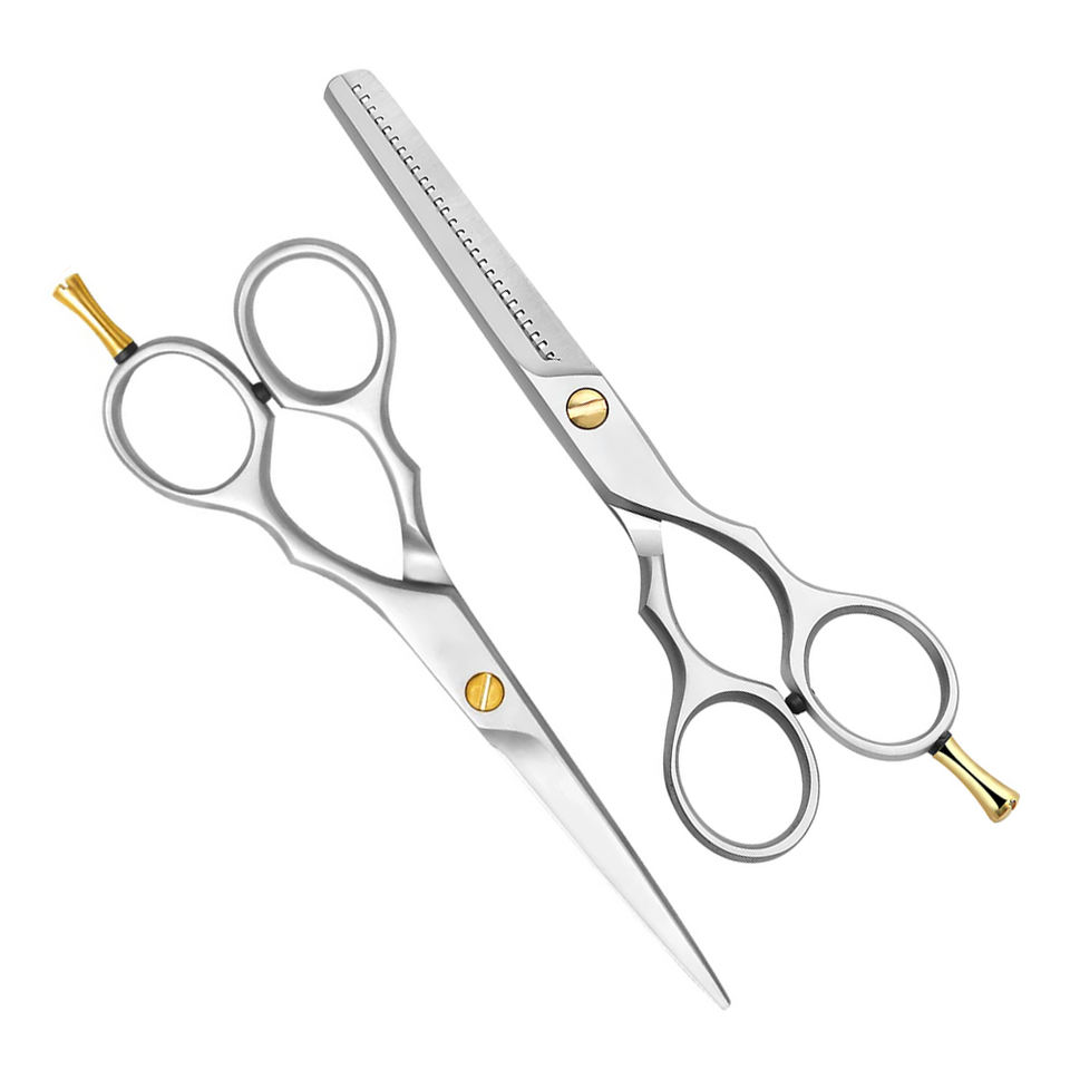 ชุดกรรไกรตัดผมสแตนเลสเยอรมันแบบสั่งทำชุดผอมบางพร้อมที่พักนิ้วทองปลายใบมีดคม