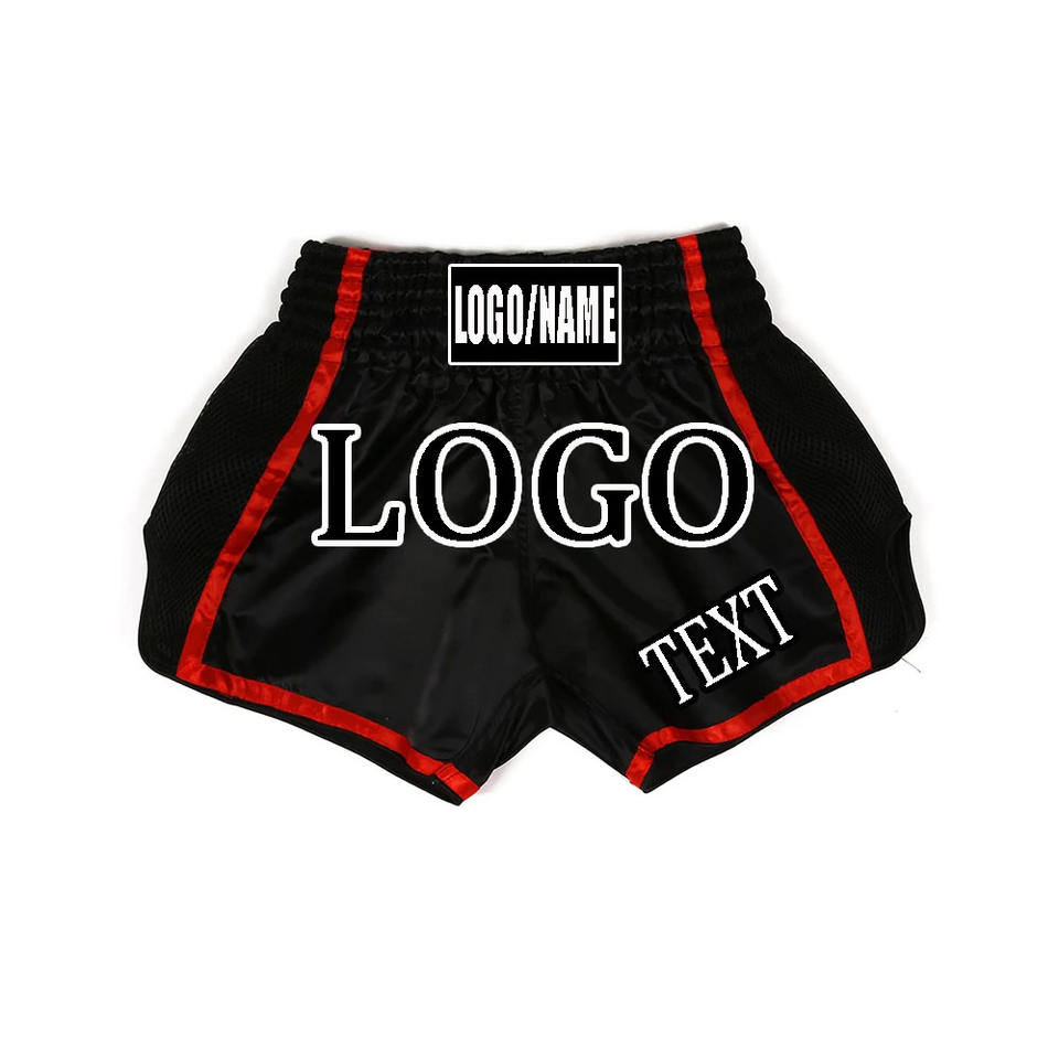 กางเกงมวยไทยสั่งทำพิเศษ พิมพ์ลายแบบซับลิเมชั่นเต็มตัว ผ้าแคนวาสทรงคาร์โก้ ลายเรียบ โลโก้สั่งทำได้ ความยาวระดับเข่า