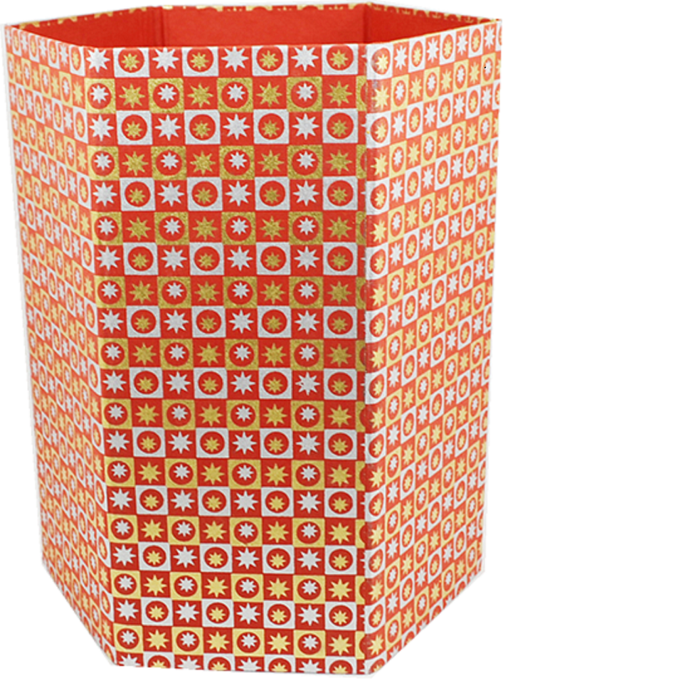 ถังขยะกระดาษผ้าไหมพิมพ์ลายผ้าฝ้ายมีโครงสร้างในตัวถังขยะทำด้วยมืองานตามสั่ง