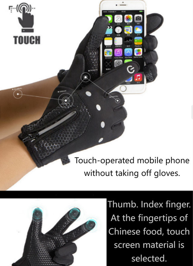กันน้ำ, การป้องกันรังสียูวี, ไม่ลื่น, สายรัดข้อมือปรับได้, ใช้งานร่วมกับ Touchscreen, น้ำหนักเบา, ระบายอากาศ, เต็มนิ้วคุณสมบัติ