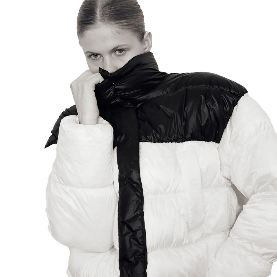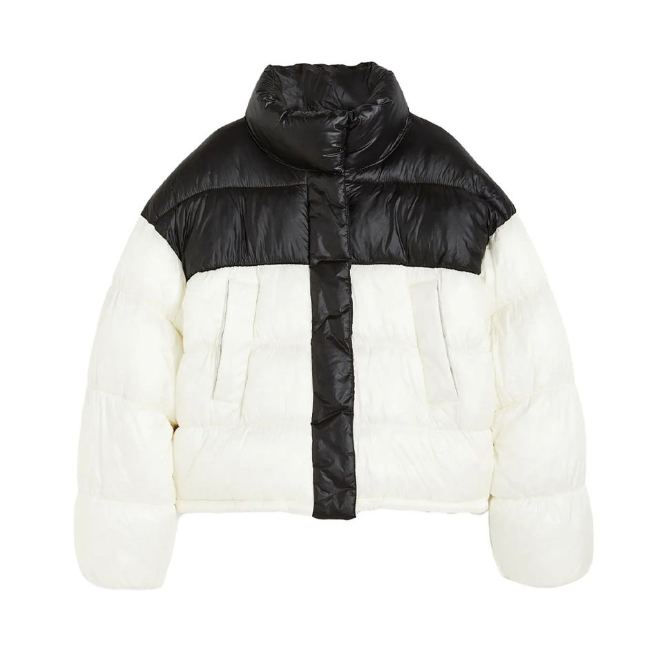 แจ็คเก็ตขนเป็ดกันลมสำหรับผู้หญิงเสื้อแจ็คเก็ตขนเป็ดแบบมีซิปยาวสองสี
