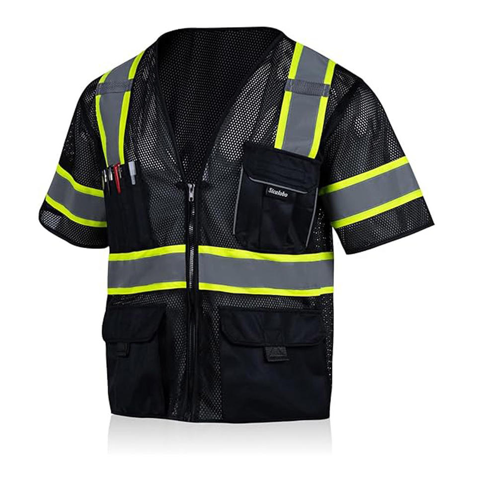เสื้อกั๊กใส่ทำงานป้องกันการมองเห็นสูงพร้อมแถบสะท้อนแสงคุณสมบัติระบายอากาศสำหรับพนักงานกลางแจ้งโลโก้ของคุณเอง