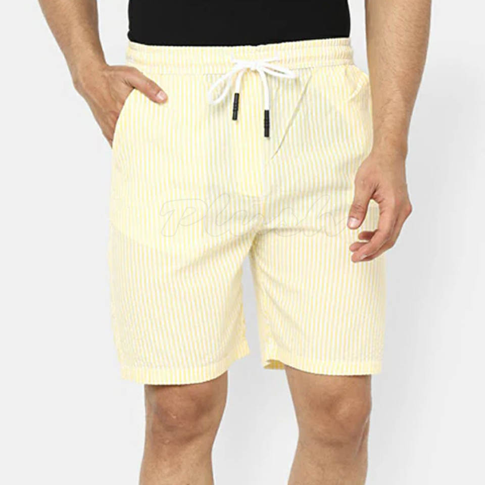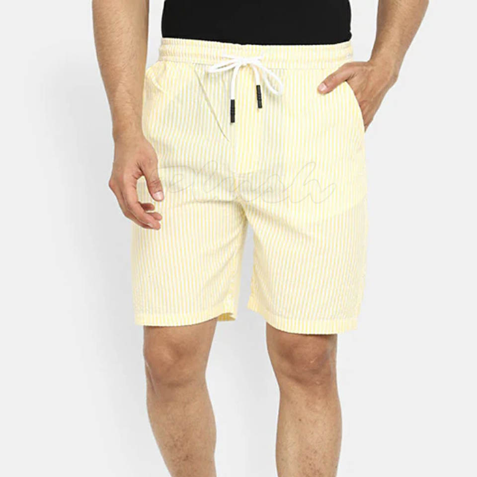 กางเกงขาสั้นลำลองของผู้ชายคุณภาพสูงผ้าแคนวาสแบบปิดเอวยางยืดแห้งเร็วระบายอากาศได้ดีสีพื้นสไตล์ใหม่