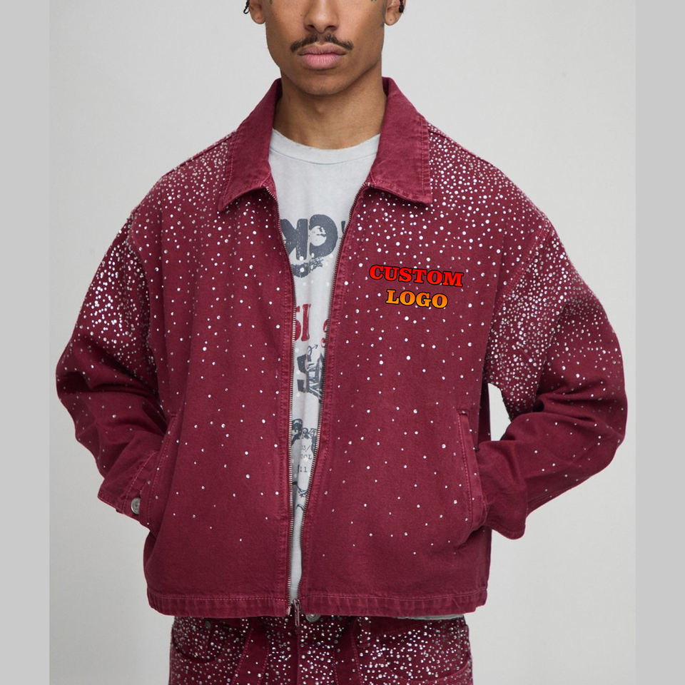 แจ็คเก็ตยีนส์สไตล์ฮิปฮอปสะพายไหล่สำหรับผู้ชายเสื้อแจ็กเก็ตยีนส์แนวสตรีทแวร์ประดับพลอยเทียม