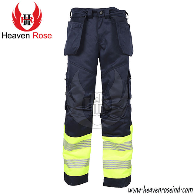 กางเกงทำงานผ้าคอตตอนของผู้ชายสะท้อนแสงทำจากผ้าโพลีคอตตอนหรูหรางานตามสั่ง