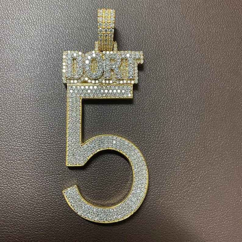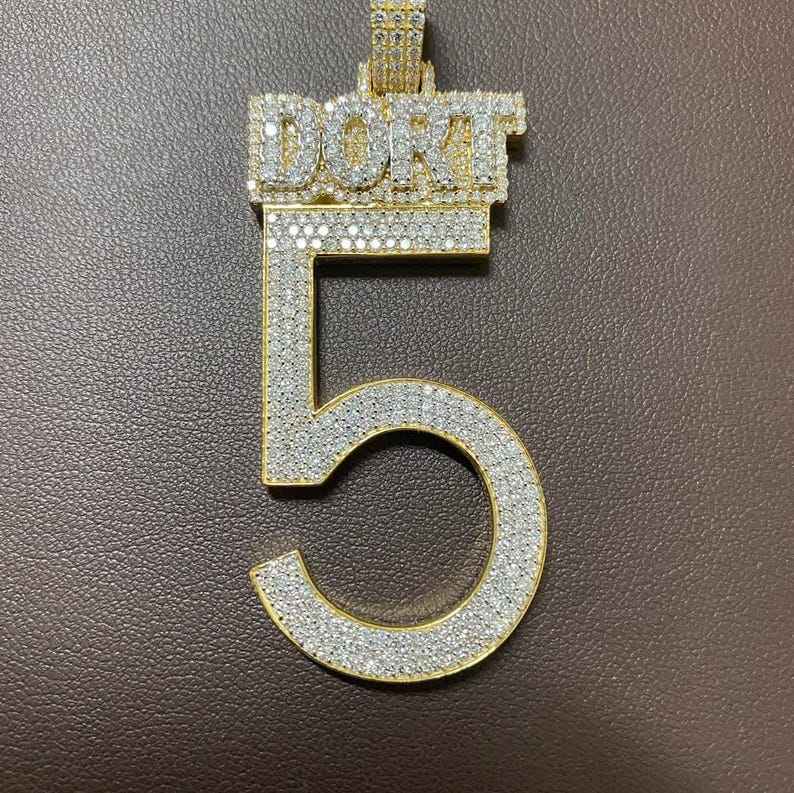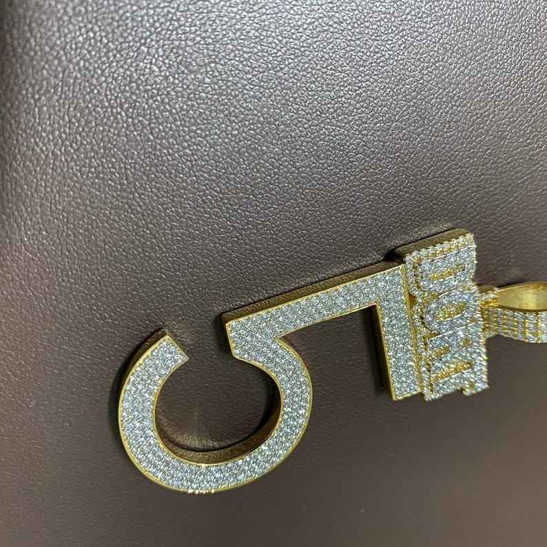 จี้โลโก้เลขนำโชคแบบสั่งทำพิเศษ ประดับเพชร VVS มอยส์ซาไนต์ สไตล์ฮิปฮอป แร็ปเปอร์ ตัวอักษรย่อ สองสี เงินสเตอร์ลิง หรูหรา