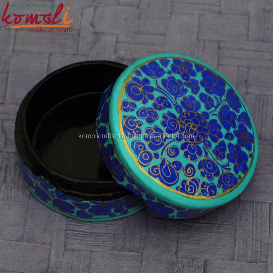 กล่องกระดาษมache ทรงกลมแบบอินเดีย คัชเมียร์ ทำตามสั่ง พร้อมภาพวาดตามแบบที่ต้องการ