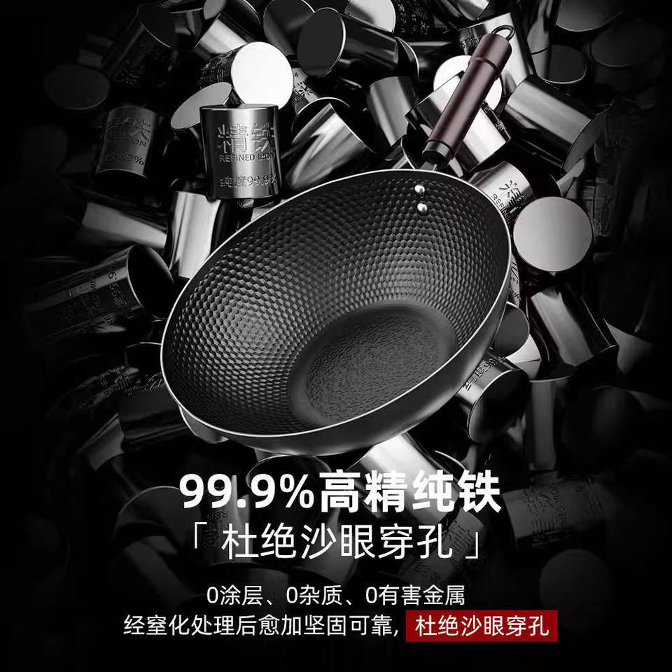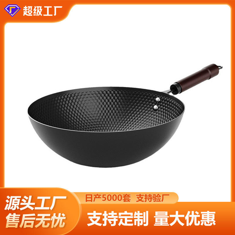 กระทะเหล็กทำมือแบบไม่เคลือบผิว สำหรับใช้ในครัวเรือน ใช้กับเตาแม่เหล็กไฟฟ้าได้ ไม่ติดกระทะ ขนาด 32 ซม.