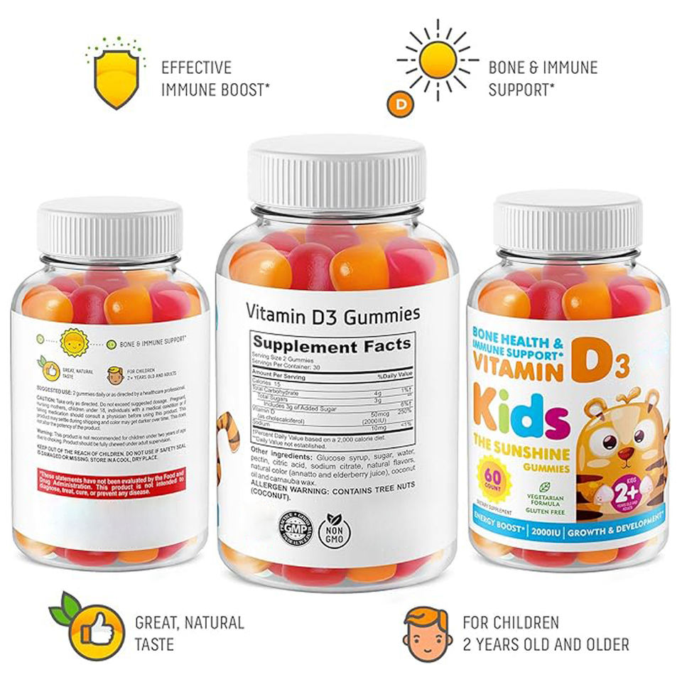 วิตามินซีและดีแบบกัมมี่สำหรับเด็กสูตรเฉพาะ วิตามินดี3แบบกัมมี่ที่ดีที่สุดสำหรับเด็ก วิตามินดี3แบบกัมมี่สำหรับเด็ก เสริมภูมิคุ้มกัน กระดูก และกล้ามเนื้อ