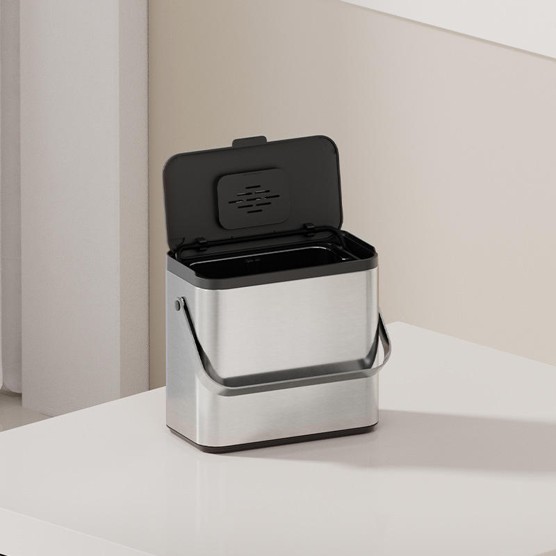 ถังขยะครัวสั่งทำพิเศษ 4 ลิตร ติดผนัง สแตนเลส แขวนใช้งานภายในอาคาร รูปทรงสี่เหลี่ยม ไม่ต้องติดตั้ง