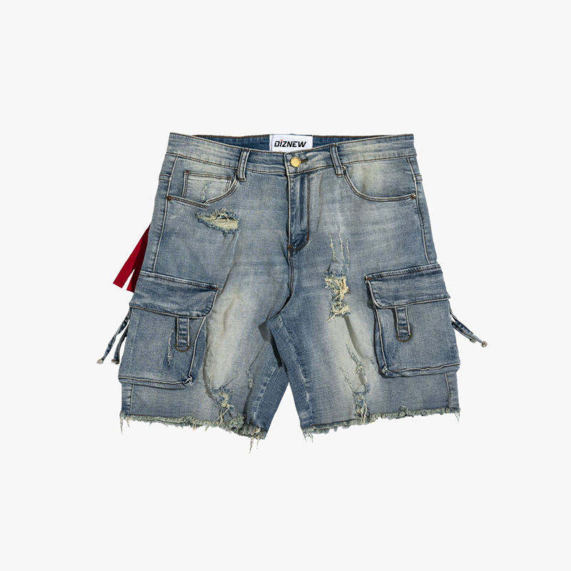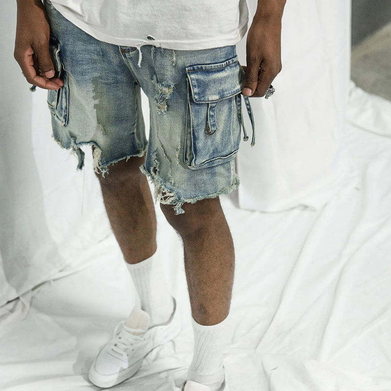 กางเกงยีนส์ขาสั้นทรงตรงแบบหลวมสไตล์สตรีทแวร์สั่งตัดได้สำหรับผู้ชาย กางเกงยีนส์ขาสั้นลำลองสำหรับผู้ชาย
