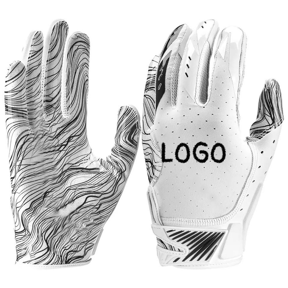 ถุงมืออเมริกันฟุตบอลแบบสั่งทำรุ่นใหม่ล่าสุด ระบายอากาศได้ดี ปราศจากซิลิโคน ผลิตจากโพลีเอสเตอร์ ราคาขายดีที่สุด ทันสมัย และเป็นมิตรต่อสิ่งแวดล้อม