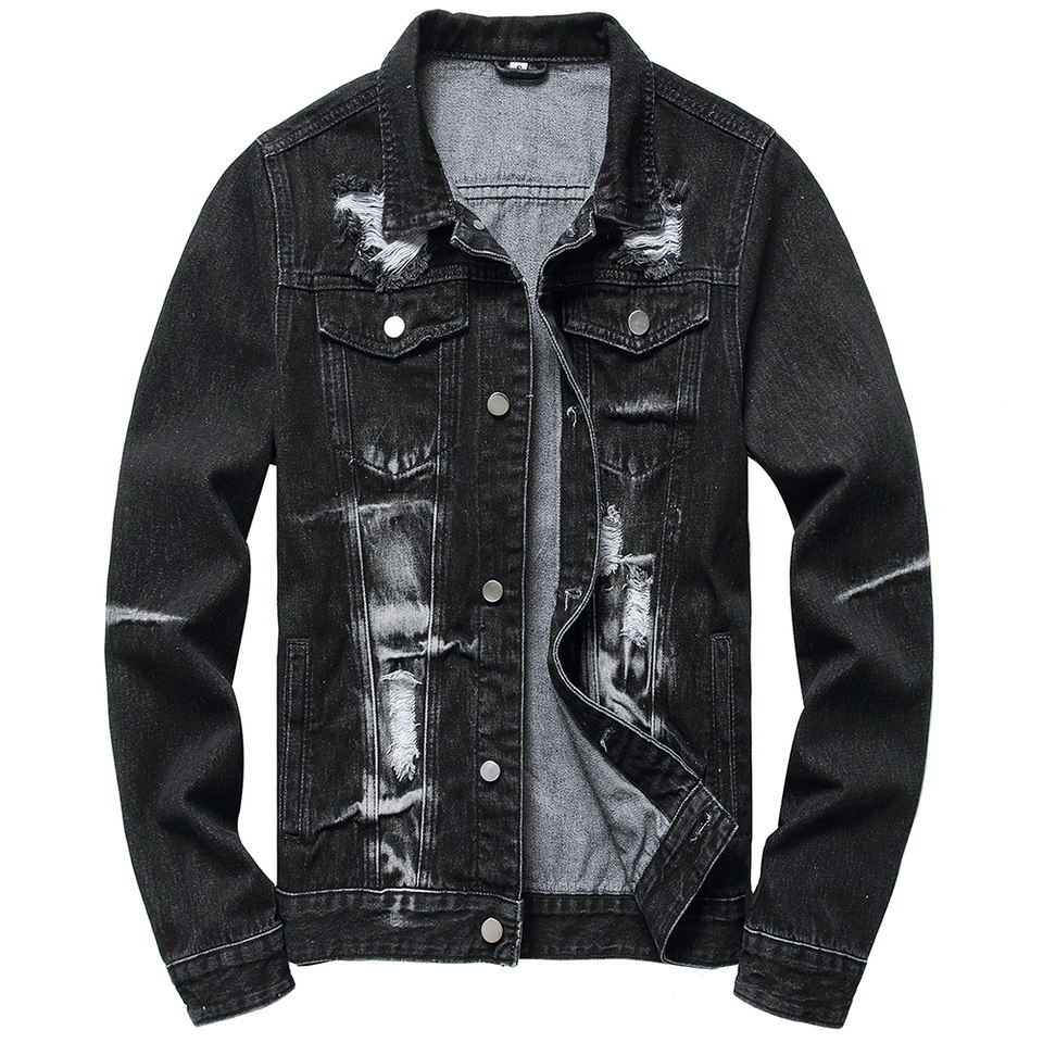 แจ็กเก็ตยีนส์วินเทจสำหรับผู้ชายแจ็กเก็ตผ้าเดนิมแฟชั่นอินเทรนด์ออกแบบได้ตามต้องการ