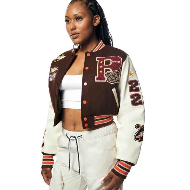 แจ็คเก็ตเลตเตอร์แมนแบบสั่งทำพิเศษ แขนหนัง แจ็คเก็ตวาร์ซิตี้แบบส่วนตัวสำหรับฤดูหนาว แจ็คเก็ตเบสบอลลำลองสำหรับผู้หญิง