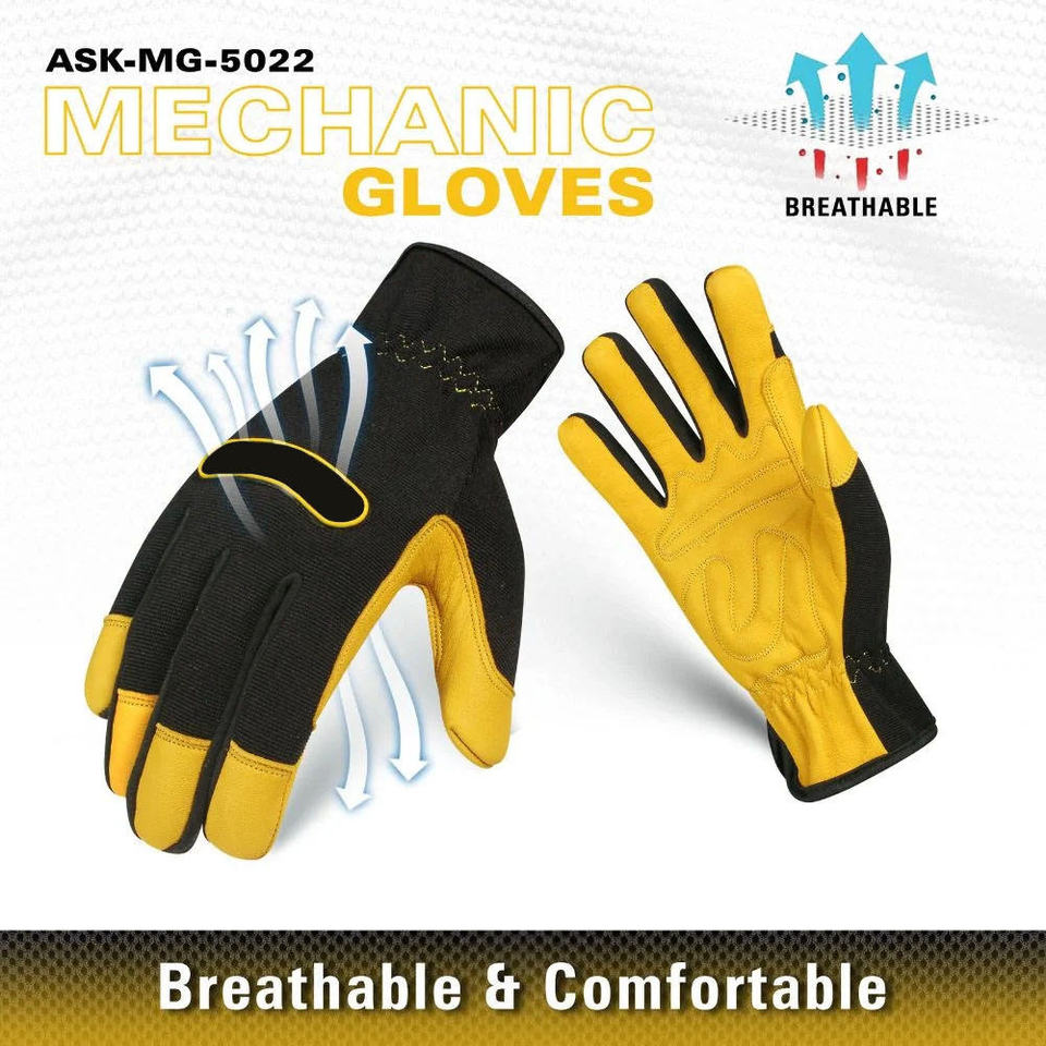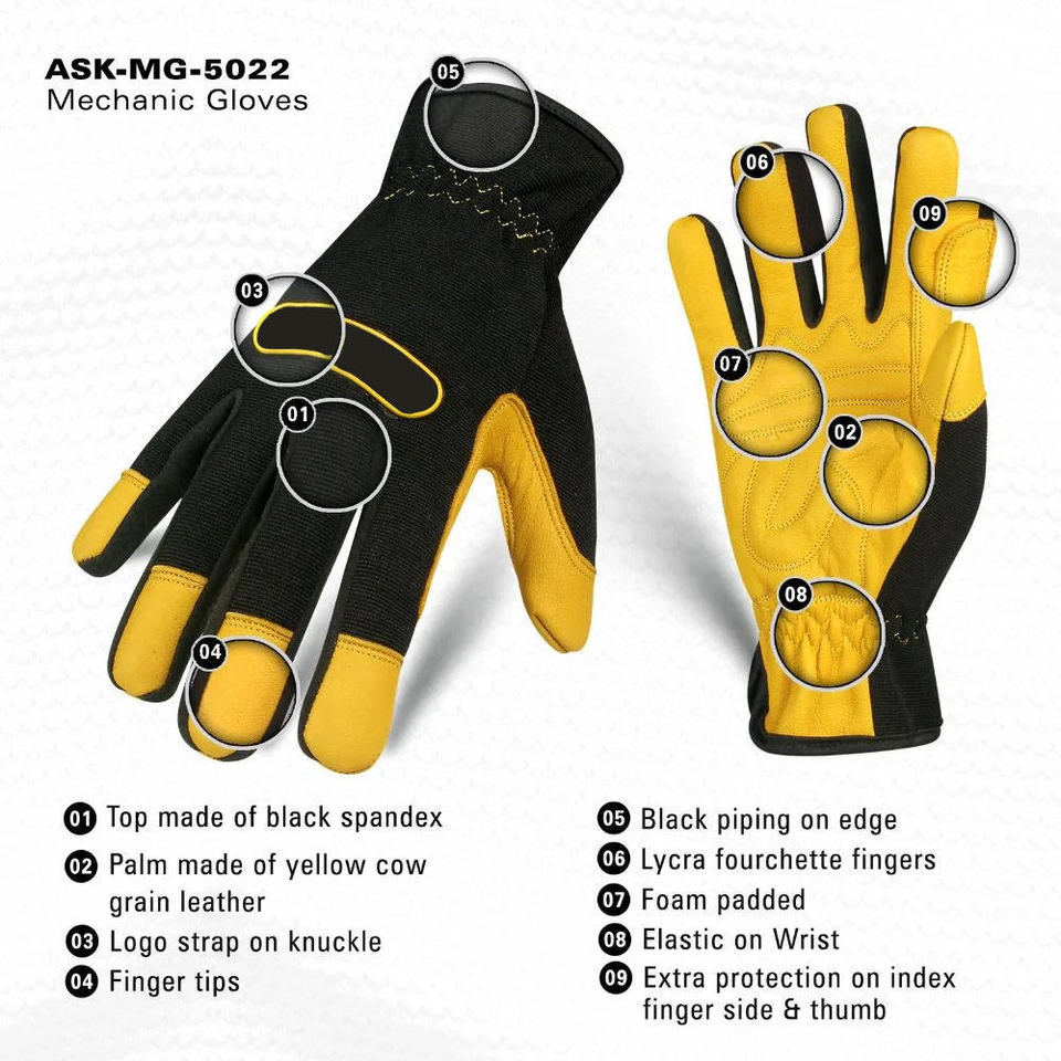 ถุงมือออกแบบโลโก้ตามสั่ง หนังแพะแท้ ถุงมือช่าง ถุงมือกันความร้อน กันบาด กันลื่น คุณภาพดีที่สุด