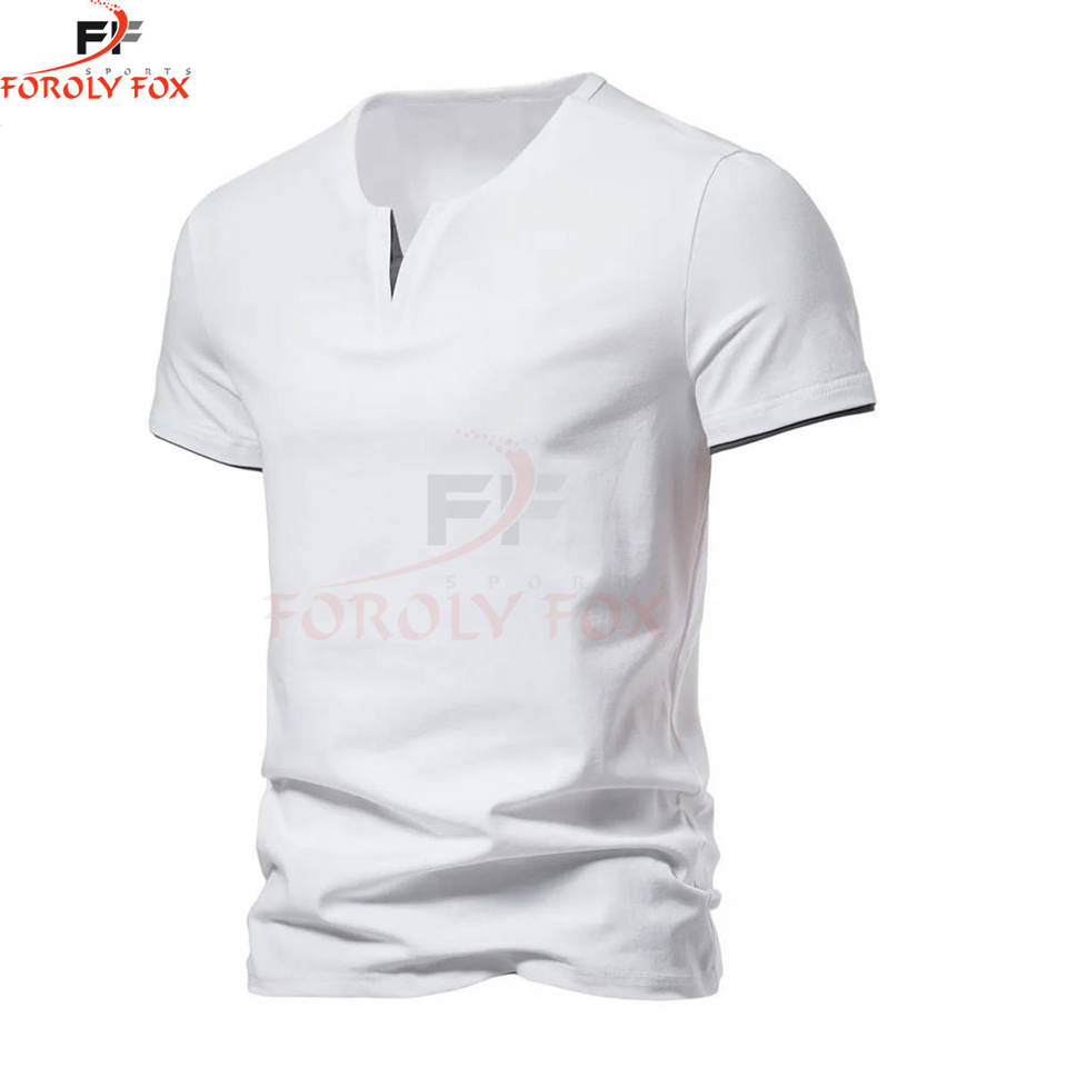 เสื้อยืดคอ V แบบแห้งเร็วสำหรับผู้ชายเสื้อยืดผ้าฝ้าย Pima สีขาวพิมพ์ลายว่างเปล่าสำหรับผู้ชายโลโก้ตามสั่ง