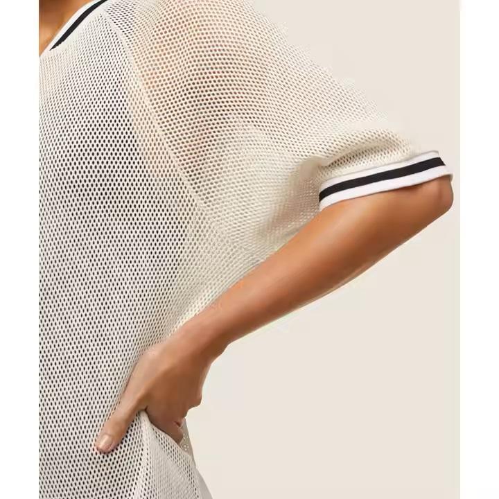 เสื้อยืดตาข่ายอเมริกัน Boxy สำหรับผู้ชายเสื้อครอปโอเวอร์ไซส์วินเทจ2025
