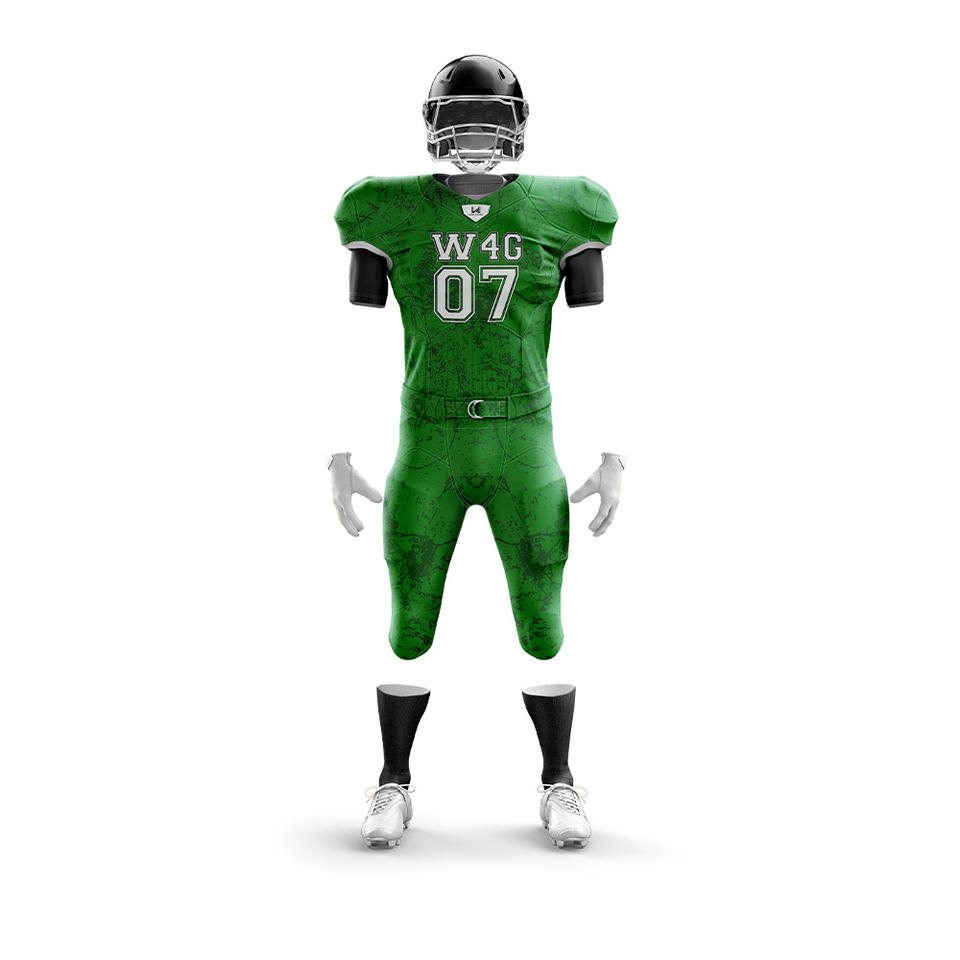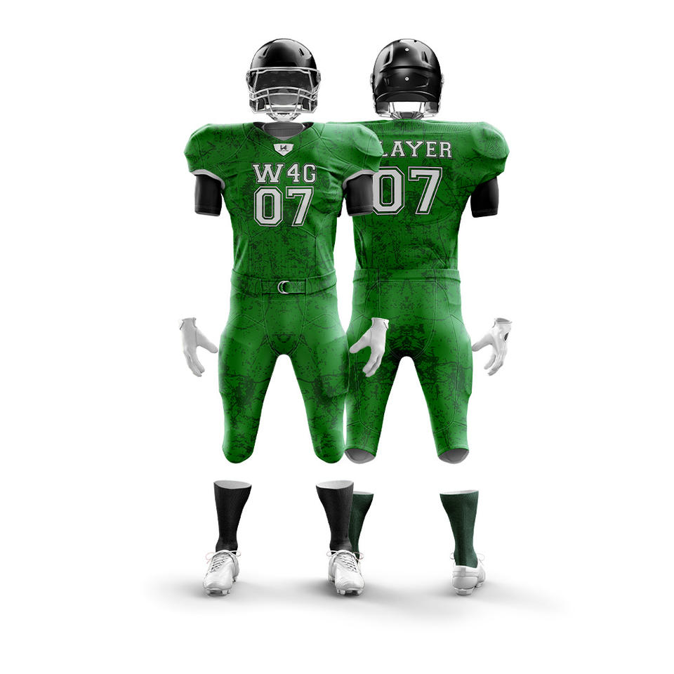 ชุดเสื้อและกางเกงขาสั้นอเมริกันฟุตบอลแบบสั่งทำพิเศษสำหรับผู้ชาย ผลิตจากโพลีเอสเตอร์ 100% ระบายอากาศได้ดี แห้งเร็ว พร้อมปักชื่อทีม โลโก้ และตำแหน่งที่ต้องการ