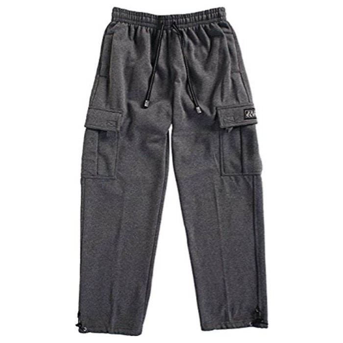 กางเกงคาร์โก้ทรงสปอร์ตเอวสูงสำหรับผู้ชาย ผลิตตามสั่ง ปิดด้วยเชือกผูก ผ้าฟลีซกันยับ สำหรับออกกำลังกายในฤดูหนาว สีเข้ม บริการ OEM