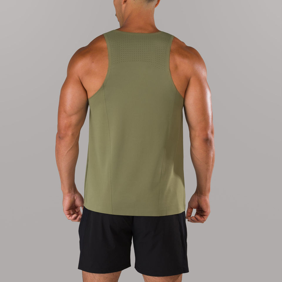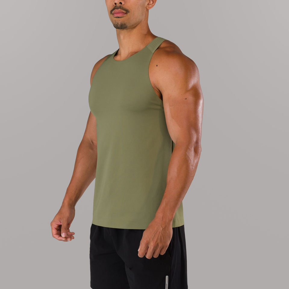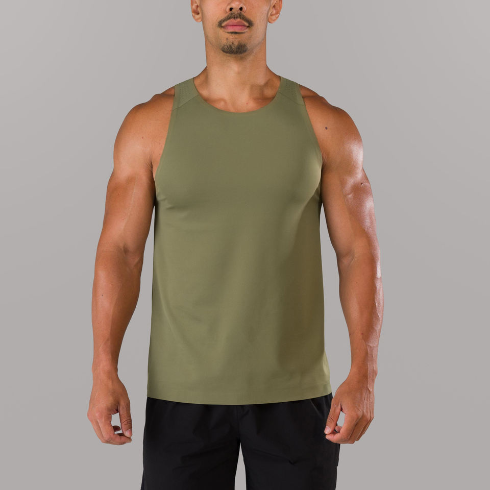 เสื้อกล้ามผู้ชายแห้งเร็วชุดออกกำลังกายในยิมสีเขียวล้วนสไตล์ลำลองผลิตตามสั่ง