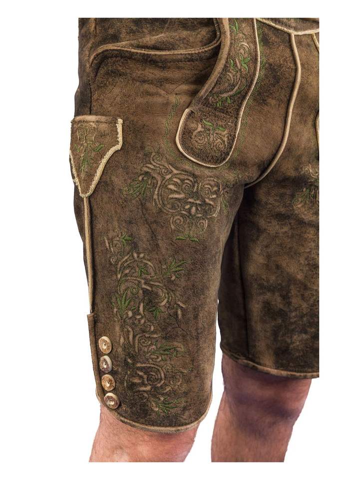 ที่กําหนดเองทําผู้ชายLederhosenสั้นSuspender Cowhideหนังนิ่มด้านหน้าปักปุ่มปิดด้านหน้ากระเป๋าเข็มขัดห่วง