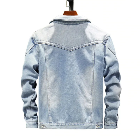 แจ็กเก็ตผ้ายีนส์ยืดได้สำหรับผู้ชายแจ็กเก็ตเดนิมผ้าฝ้ายสีน้ำเงินสำหรับฤดูหนาวสำหรับผู้ชายไซส์พิเศษผลิตตามสั่ง