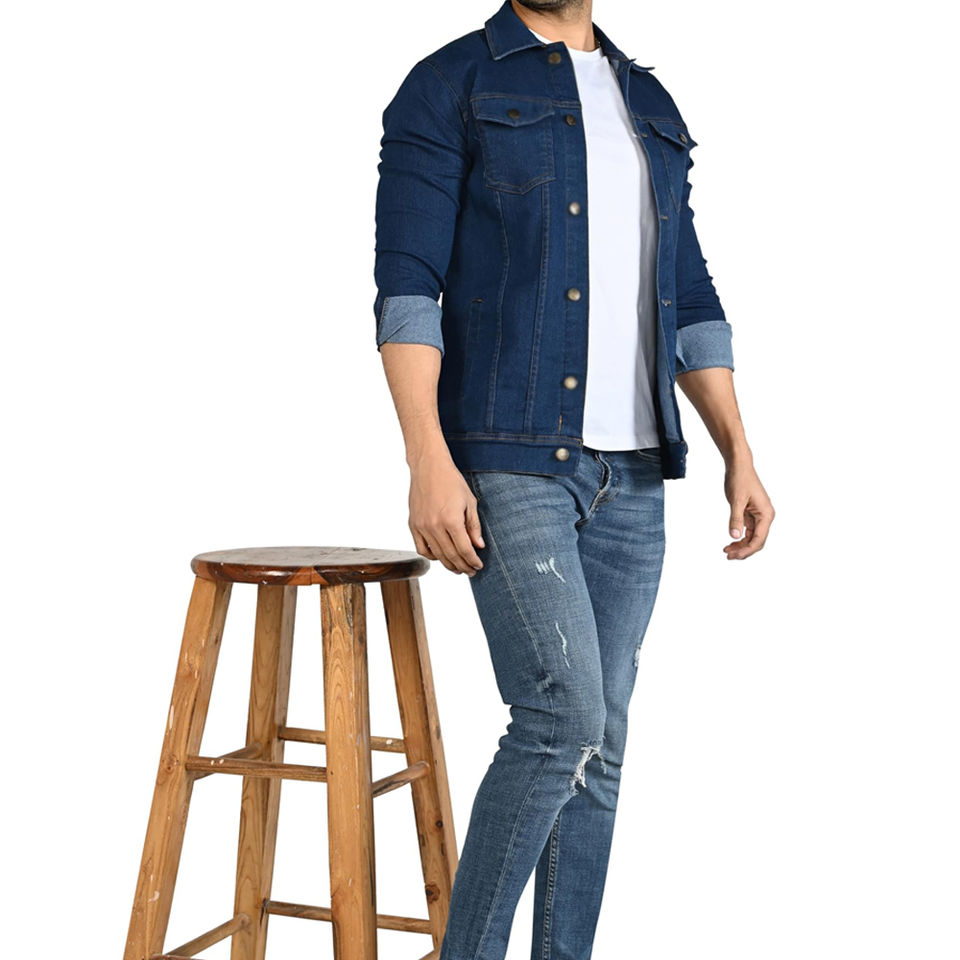 แจ็คเก็ตยีนส์ผู้ชายสั่งตัดพิเศษ แจ็คเก็ตยีนส์ผ้าฝ้ายสีน้ำเงินสำหรับฤดูหนาว แจ็คเก็ตยีนส์เรียบง่ายสำหรับผู้ชายไซส์ใหญ่