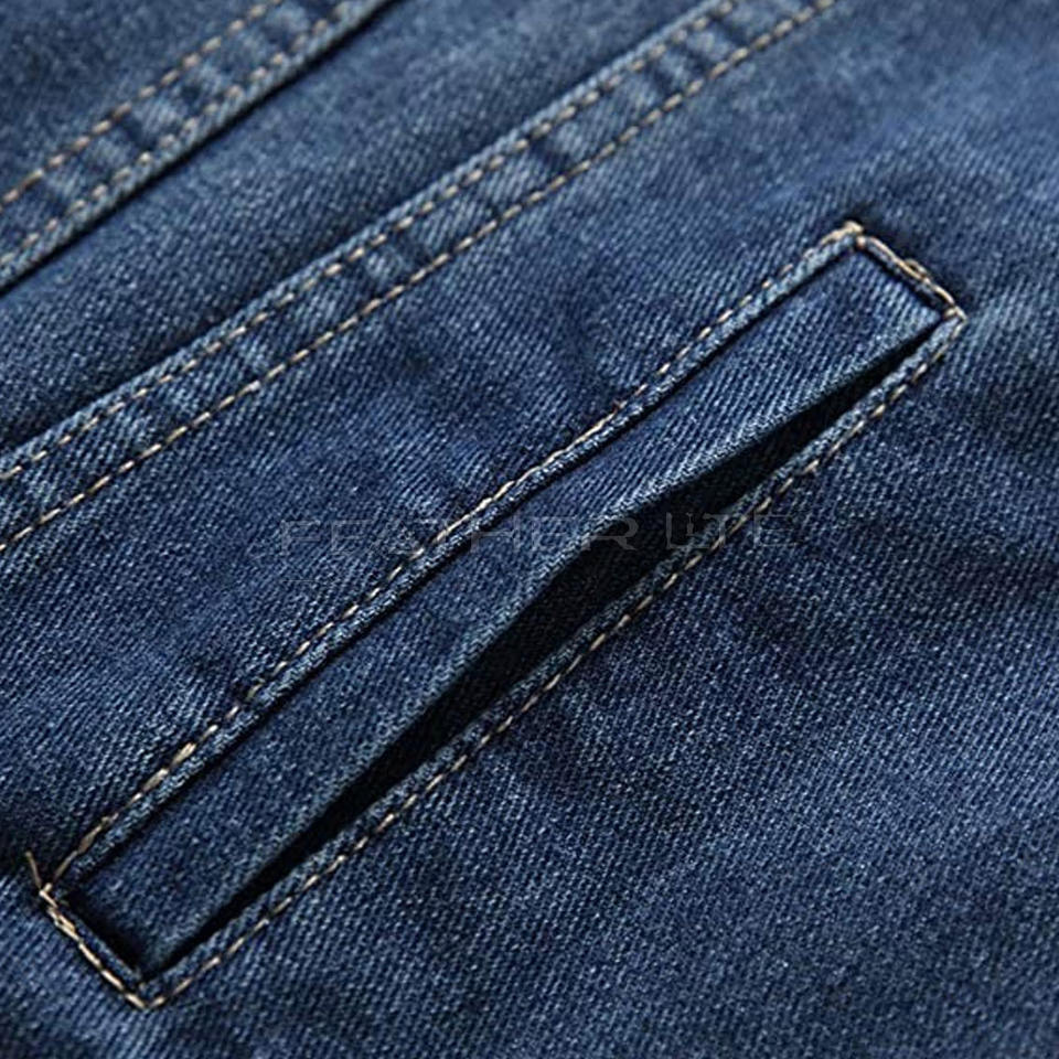 แจ็กเก็ตยีนส์ธรรมดาของผู้ชายผ้าฝ้ายยืดได้สำหรับฤดูหนาวผ้าคอตตอน100% สไตล์สตรีทพลัสไซส์ระบายอากาศได้อย่างรวดเร็ว