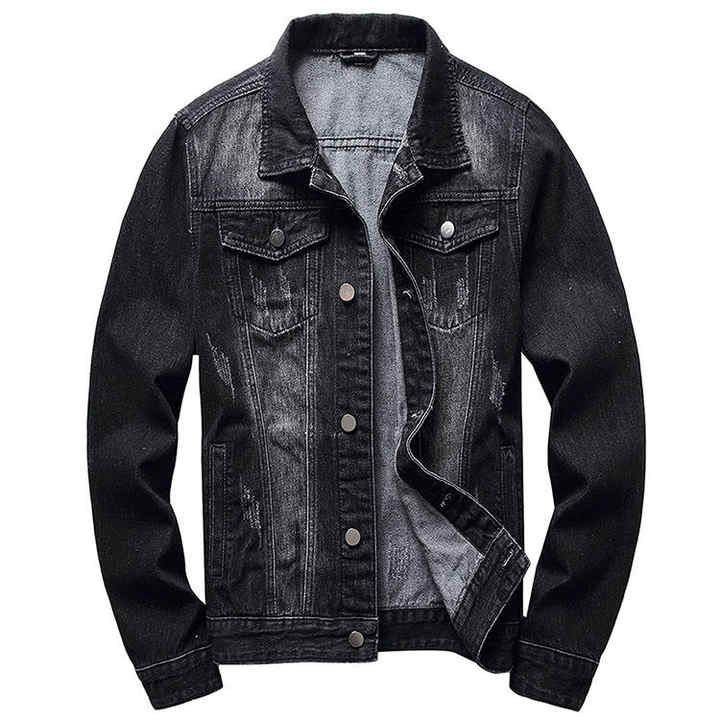 แจ็คเก็ตยีนส์ผู้ชายสั่งตัดพิเศษ ผ้าเดนิมยืดได้ แจ็คเก็ตยีนส์ผ้าฝ้ายสำหรับฤดูหนาว แจ็คเก็ตยีนส์เรียบง่ายสำหรับผู้ชาย แจ็คเก็ตยีนส์ไซส์ใหญ่สำหรับผู้ชาย