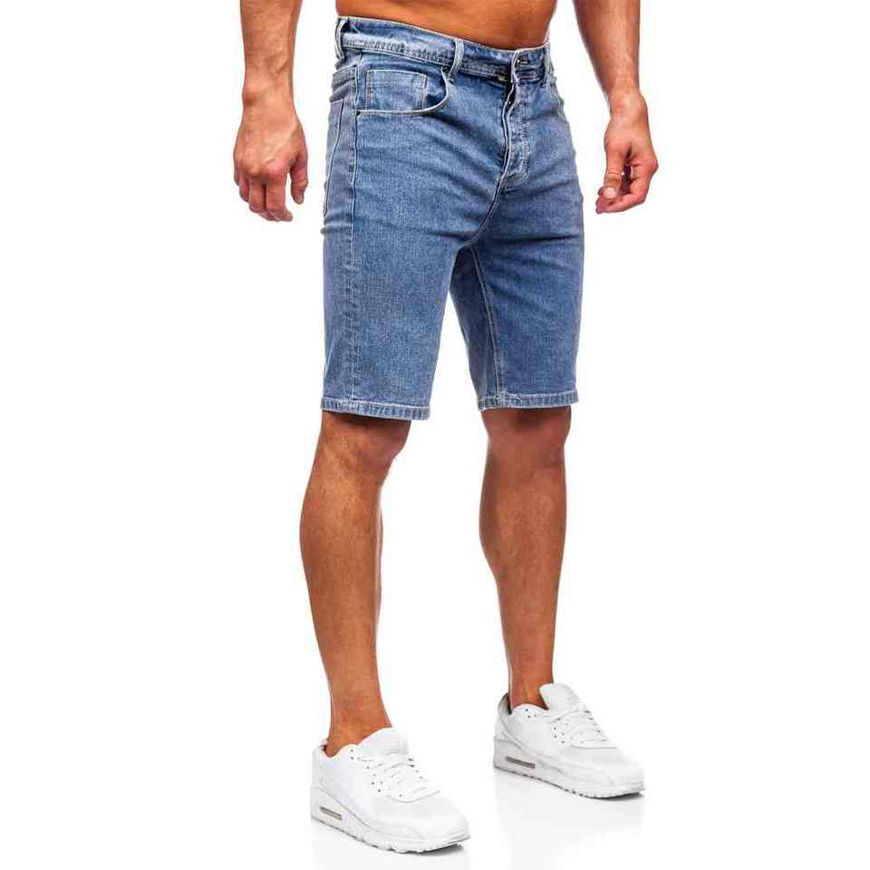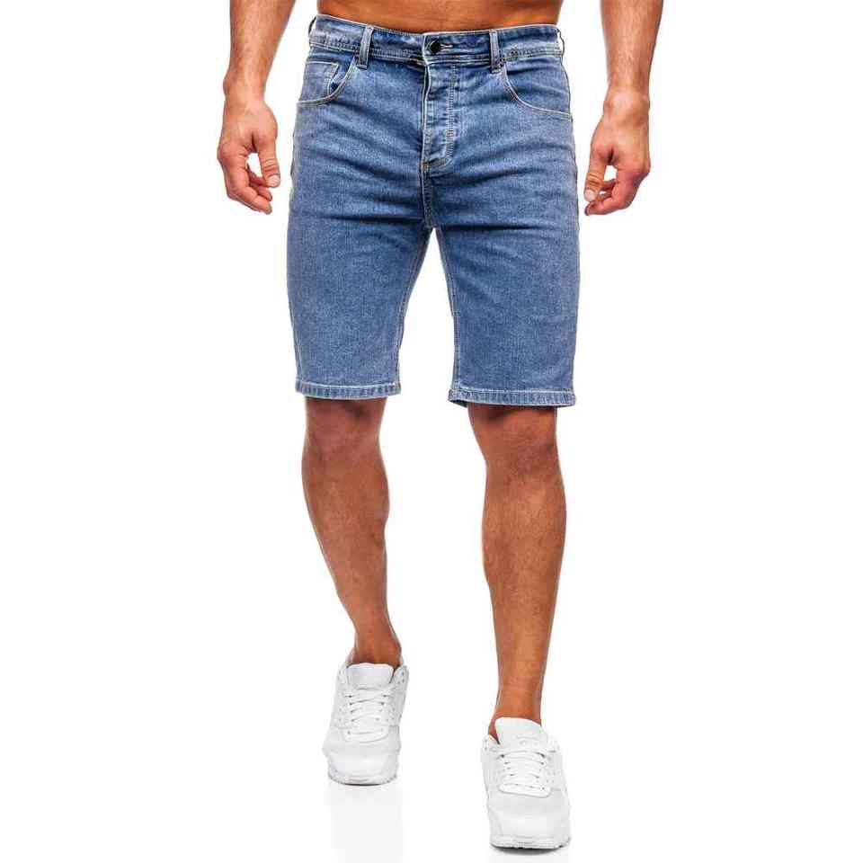 กางเกงยีนส์ขาสั้นสำหรับผู้ชายซักกลางเอวสูงผ้าฝ้าย100% น้ำหนักเบาระบายอากาศสไตล์ลำลองตามสั่ง